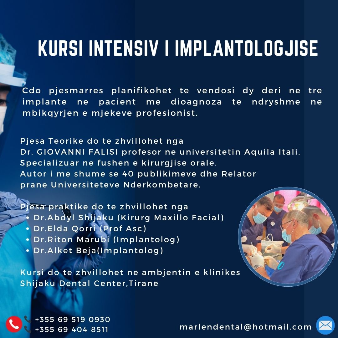 Marlen Dental zhvillon kursin e rradhës të implantologjisë ne datat 17-19 Janar 2025.