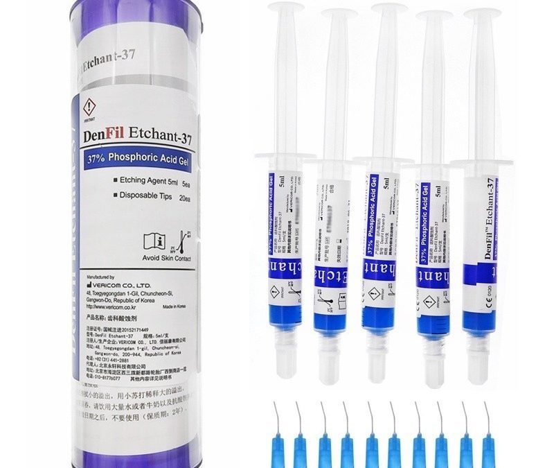 Packing: Each pack contains 5 syringes each with 3ml of etching gel (in total 15ml) + 20 blue disposable tips.