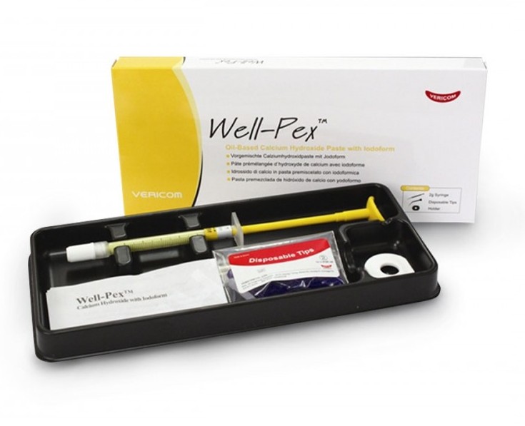 Root canal filling material for the infected root canal. Contains Calcium Hydroxide and Iodoform mainly, having good radipacity and antibacterial characteristics.
